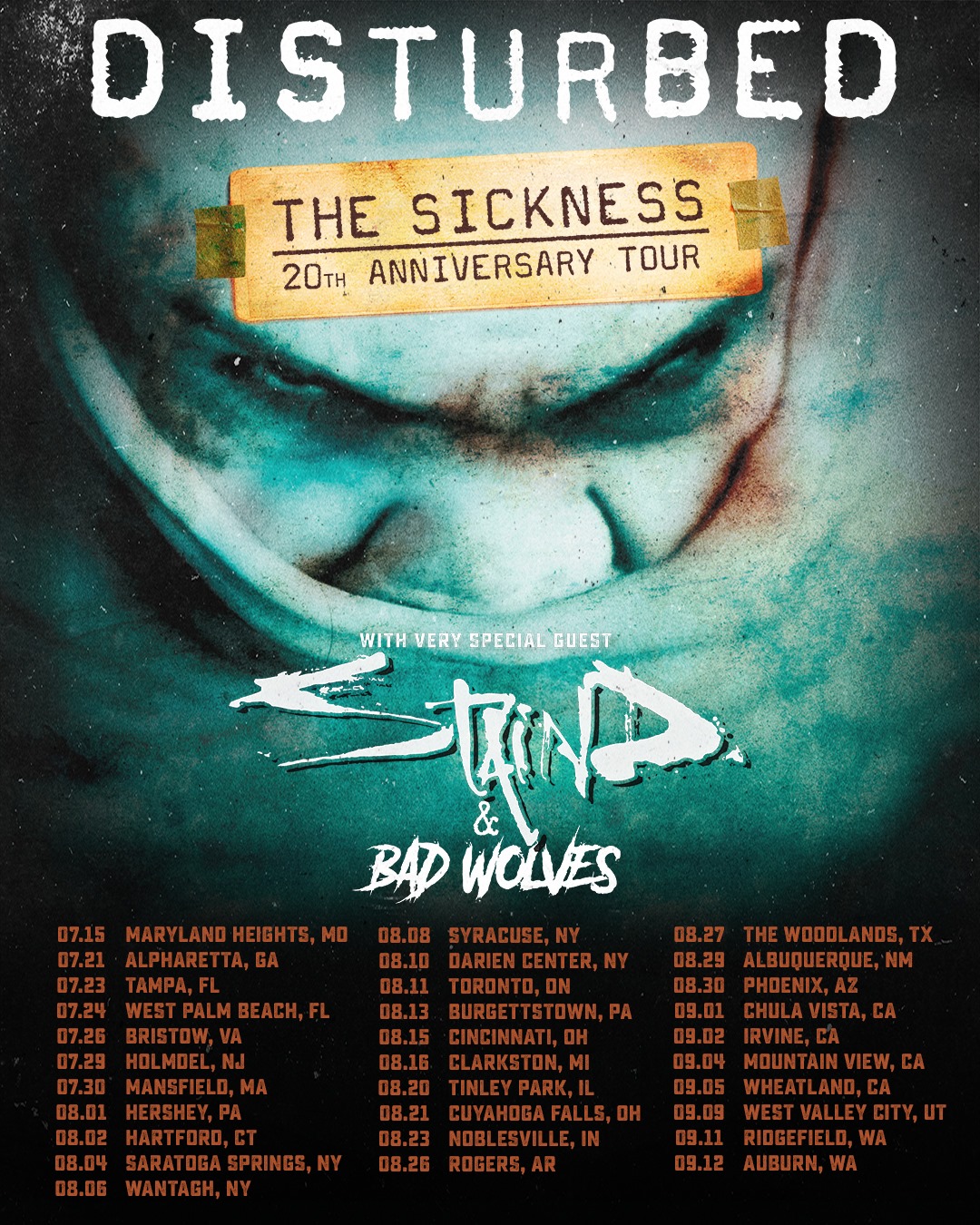 DISTURBED frontman David Draiman has confirmed that the band won't perform its 2000 debut album "The Sickness" in its entirety on "The Sickness 20th Anniversary Tour". "No, we won't do the entire album, but we're going to do a ton of 'Sickness' material, deeper cuts, stuff people haven't heard us play off the record for a while, and definitely a huge portion of material will be 'Sickness'-oriented," the singer told Billboard.com in a new interview. "You can't, unfortunately — or fortunately, depending on how you look at it — as a band at our level, at this point of our career, you can't just go out and play one record because everybody came on board at different stations," the explained. "They want to hear what they fell in love with. There's definitely new production elements that we're toying with, that are elements that we've maybe used during 'The Sickness' era, but that we're doing in a new and more provocative way. That's about all I can say." "The Sickness 20th Anniversary Tour" kicks off on July 15 in Maryland Heights, Missouri, hitting amphitheaters before wrapping up on September 12 in Auburn, Washington. STAIND and BAD WOLVES will serve as special guests on the tour. In 2010, DISTURBED celebrated the tenth anniversary of the release of "The Sickness" by reissuing it with exclusive b-sides and expanded artwork, as well as a first-time-ever vinyl edition. Released on March 7, 2000, "The Sickness" is DISTURBED's best-selling album to date, thanks to such hit singles as "Stupify", "Voices" and "Down With The Sickness". Guitarist Dan Donegan told The Pulse Of Radio that the band never expected "Down With The Sickness" or "The Sickness" to do as well as they did. "I think 'Down With The Sickness' was like the seventh most downloaded song that was recorded in the '90s," he said. "It was like in a list of like four Michael Jackson songs and NIRVANA's 'Smells Like Teen Spirit' and we were in the Top 10 of those songs. And I was just blown away by those statistics. Those are big numbers there. I mean, we're just overwhelmed to think that we could go from a garage band in the south side of Chicago to selling a lot of albums and having a fan base and making a career out of it." Last September, DISTURBED's "No More" landed at position No. 1 on Billboard's Mainstream Rock Songs airplay chart. The track, which was the third single from the band's 2018 album "Evolution", marked DISTURBED's seventh straight No. 1 on the chart. Each of DISTURBED's last seven singles has reached No. 1 on Mainstream Rock Songs, a feat unmatched by any artist. DISTURBED has a total of 10 Mainstream Rock Songs No. 1s. THREE DAYS GRACE holds the record with 15 No. 1s, followed by SHINEDOWN at 14 and VAN HALEN with 13.