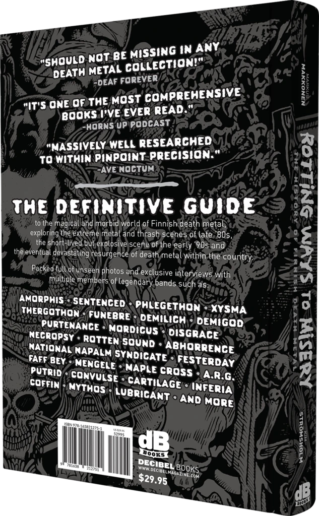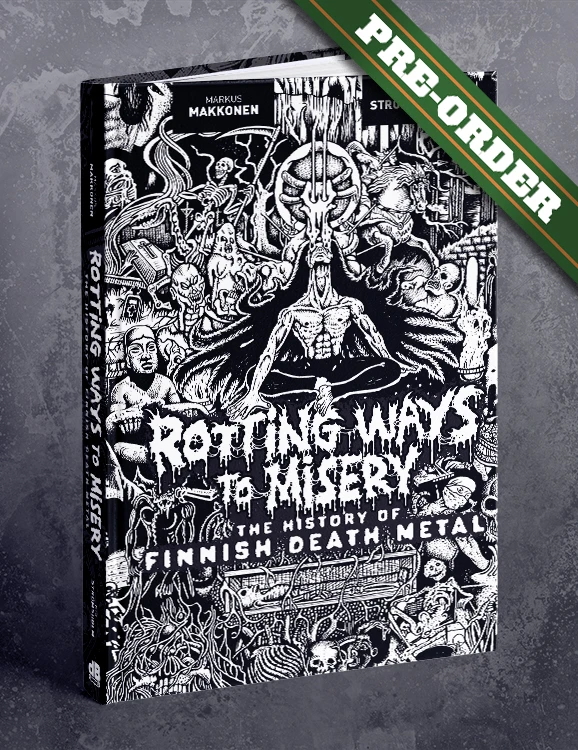 Decibel Books has announced the U.S. release of "Rotting Ways To Misery: The History Of Finnish Death Metal". The definitive guide to the magical and morbid world of Finnish death metal, exploring the extreme metal and thrash scenes of late '80s, the short-lived but explosive scene of the early '90s and the eventual devastating resurgence of death metal within the country. Written by Markus Makkonen (SADISTIK FOREST, NERVE SAW, HOODED MENACE) and Kim Strömsholm (FESTERDAY, ...AND OCEANS, HAVOC UNIT), it is packed full of unseen photos and exclusive interviews with multiple members of legendary bands such as: * AMORPHIS * SENTENCED * PHLEGETHON * XYSMA * THERGOTHON * FUNEBRE * DEMILICH * DEMIGOD * PURTENANCE * MORDICUS * DISGRACE * NECROPSY * ROTTEN SOUND * ABHORRENCE * NATIONAL NAPALM SYNDICATE * FESTERDAY * FAFF BEY * MENGELE * MAPLE CROSS * A.R.G. * PUTRID * CONVULSE * CARTILAGE * INFERIA * COFFIN * MYTHOS * LUBRICANT The book also features contributions from outside of the scene from peers and admirers of Finnish death metal, including members of AUTOPSY, AT THE GATES, MISERY INDEX, THE HAUNTED, BENEDICTION, ASPHYX, ENTRAILS, BLACK CRUCIFIXION, TEITANBLOOD, UNCOFFINED, ANATOMIA and many, many more. This essential reading on Finland's long overlooked impact on the death metal scene is strictly limited to 1,000 copies and will never be reprinted. Pre-orders are available now and are expected to ship in late April.