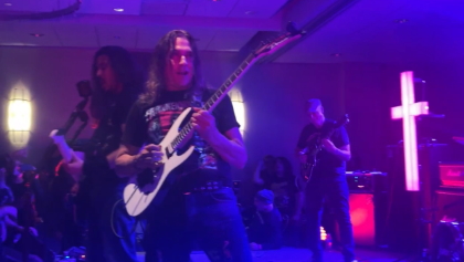 This past Saturday (November 19), KINGS OF THRASH, the new band featuring former MEGADETH members David Ellefson (bass) and Jeff Young (guitar), performed at the Days Of The Dead horror convention in Chicago, Illinois. Video of the concert can be seen below. The group, which also includes drummer Fr...